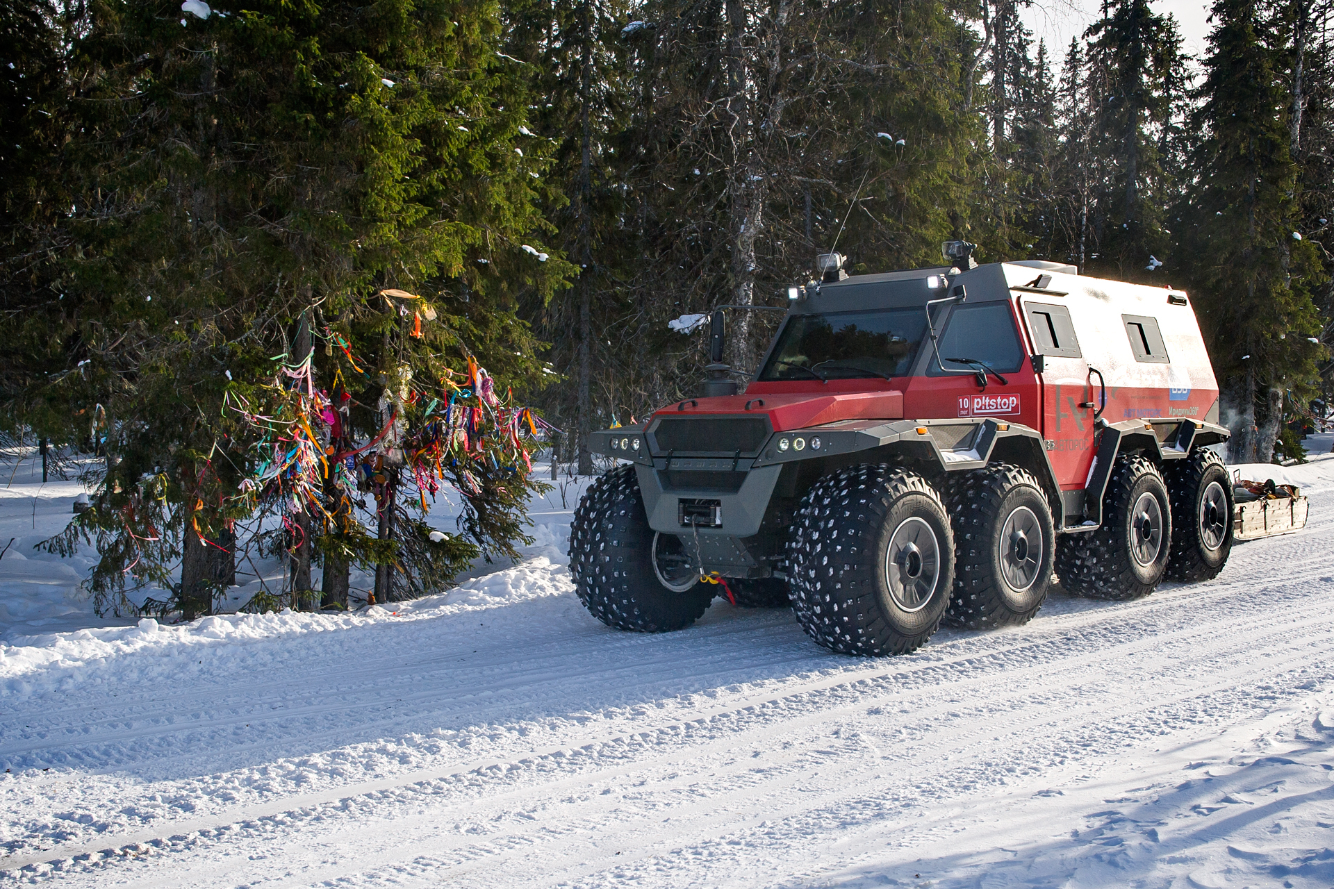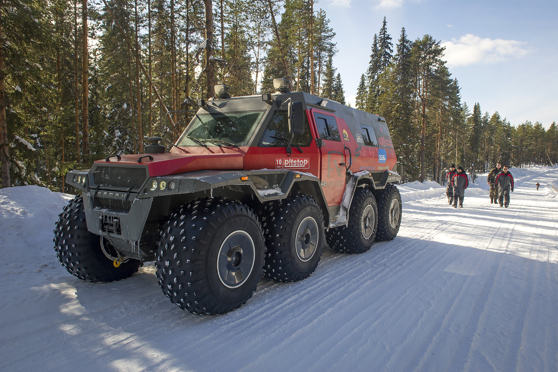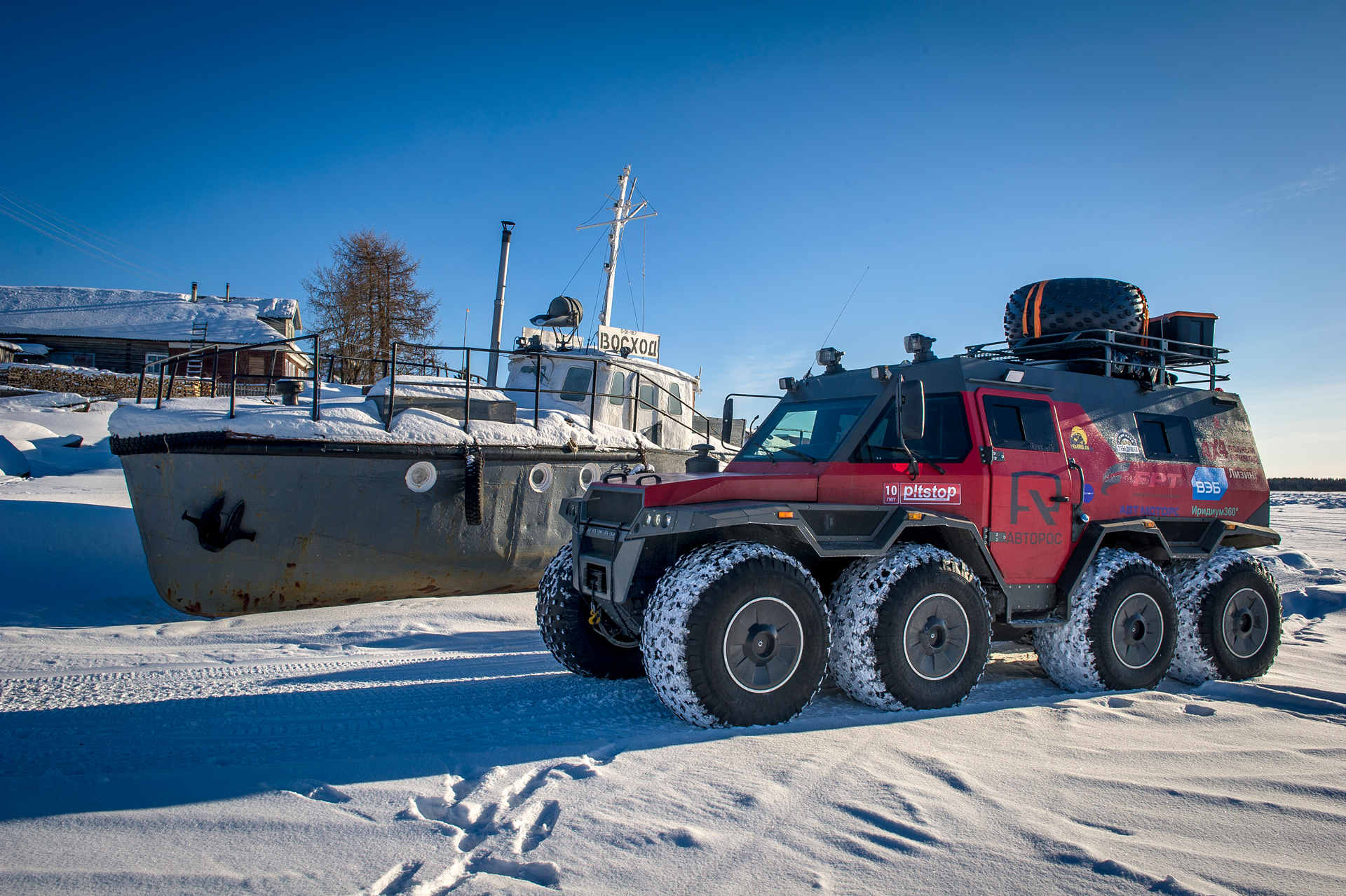 The expedition team came back home. We returned back through Arkhangelsk. Estimated arrival date was March 28th. The red SHAMAN returned to Tver on its own wheels. Evgeny Pavlov sent his 6x6 quad bike back with a transport company in Ukhta.