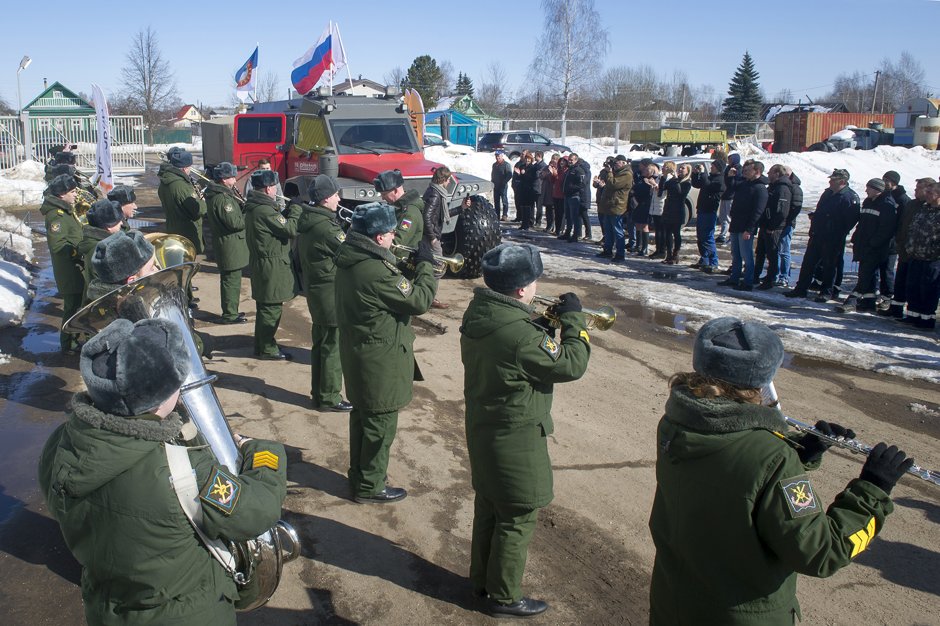 The expedition "NORTH WITH NO BARRIERS" ended. On Friday noon, accompanied by the music of Russian military marches, the all-terrain vehicle Shaman entered the territory of the Avtoros company, where the entire company staff greeted it with great joy. Avtoros is really grateful to everyone who helped, participated and organized this interesting trip to the North. The expedition took place from March 4 to 30, during this time the SHAMAN traveled 7600 km - 3500 km off-road and the rest on public roads. The route passed through Arkhangelsk, Mezen, Canin Nos, Naryan-Mar, Ust-Tsilma, Ukhta, Mezen and back to the AVTOROS factory.