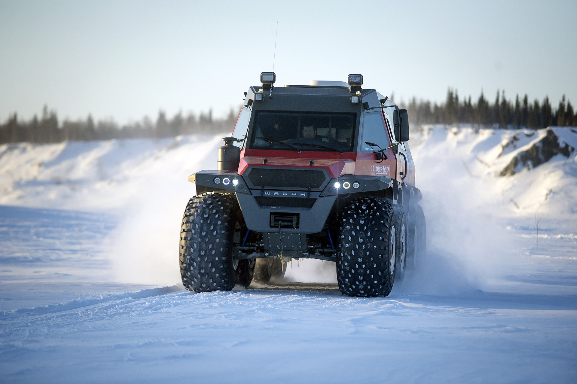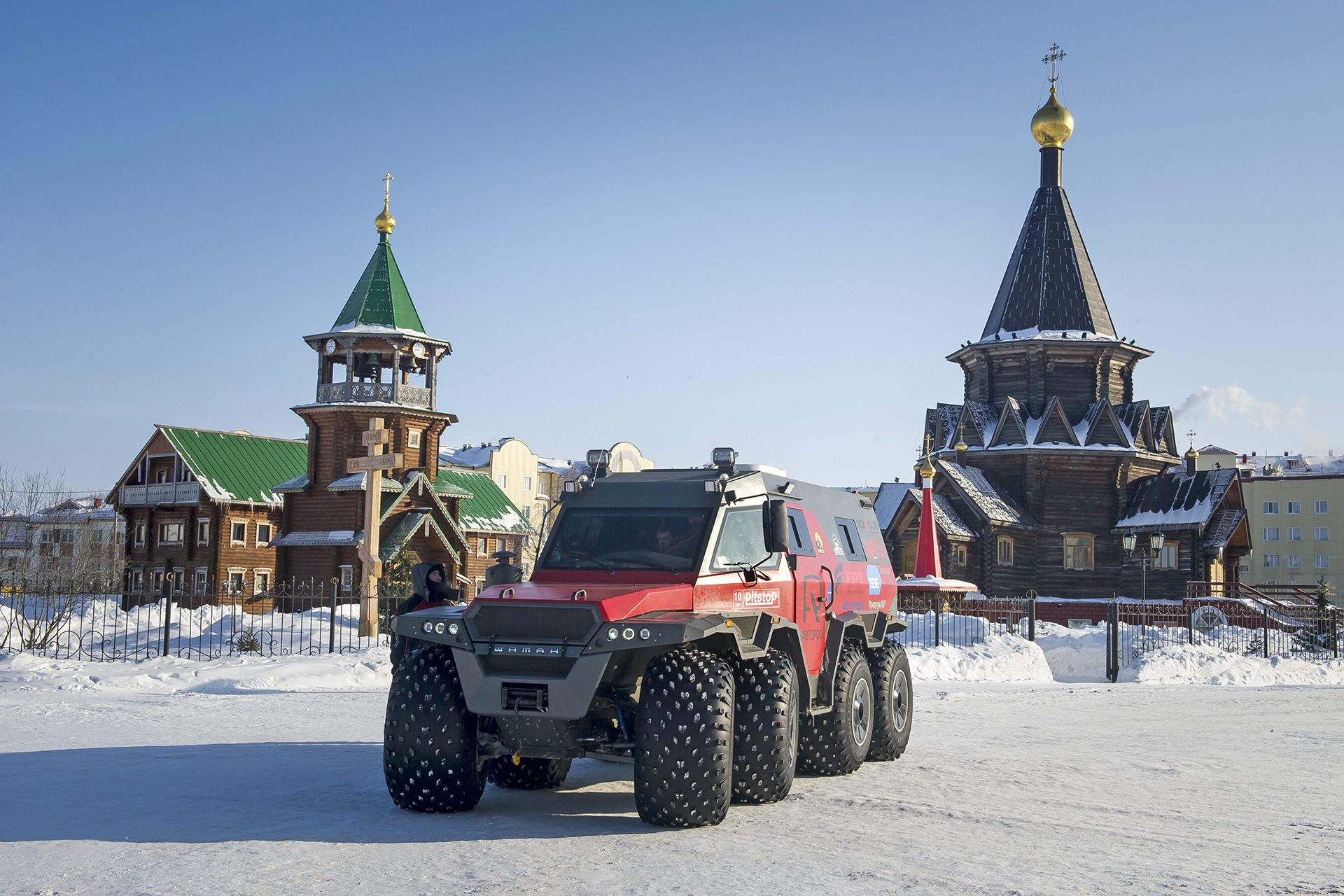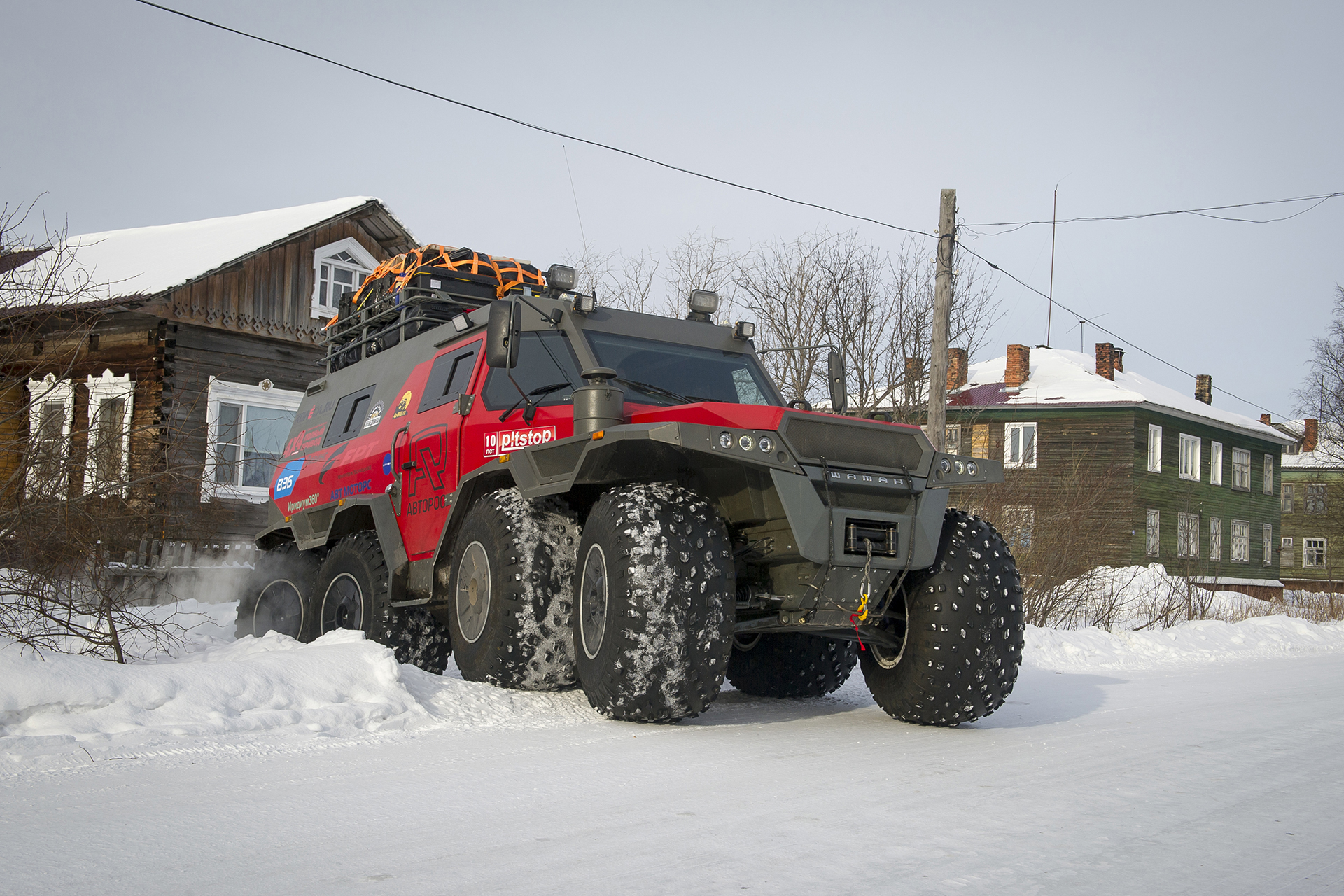 The first hundred kilometers we traveled in a strong snowstorm, snow swept the road and covered the windshield, the wipers were freezing, but after Bezhetsk the weather improved. In Vologda Region, the roads were covered with ice, but all-terrain vehicles rode along them quite confidently, thanks to the the weight of the cars and the number of wheels. The motorcade was headed by Pavlov’s “tadpole”, followed by a crew of mechanics, and a crew of journalists closed a small motorcade. We were driving together, although not fast: cruising speed was about 55-60 km /h. There were still more than 1,000 km ahead - the expedition was still at the very beginning.