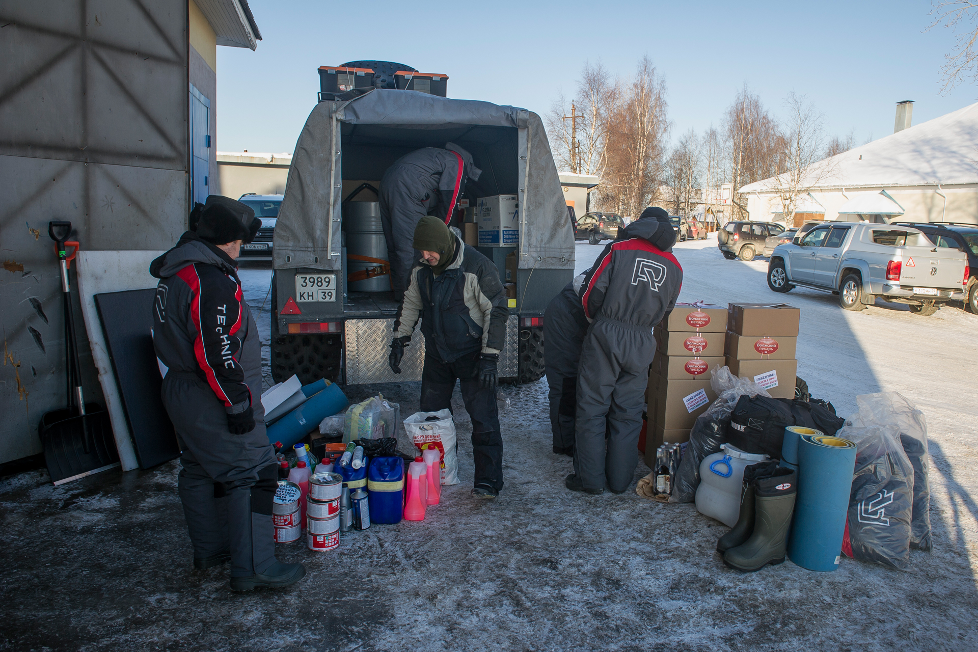 Our expedition had a short delay near Arkhangelsk. We purchased some more groceries, fresh vegetables and gifts. The red SHAMAN returned from Arkhangelsk, where he went to the gas station for refueling, and also filled two 200-liter barrels of gasoline - for Yevgeny Pavlov’s quad bike . Finally, the “Red One” came back and they hurriedly set off.