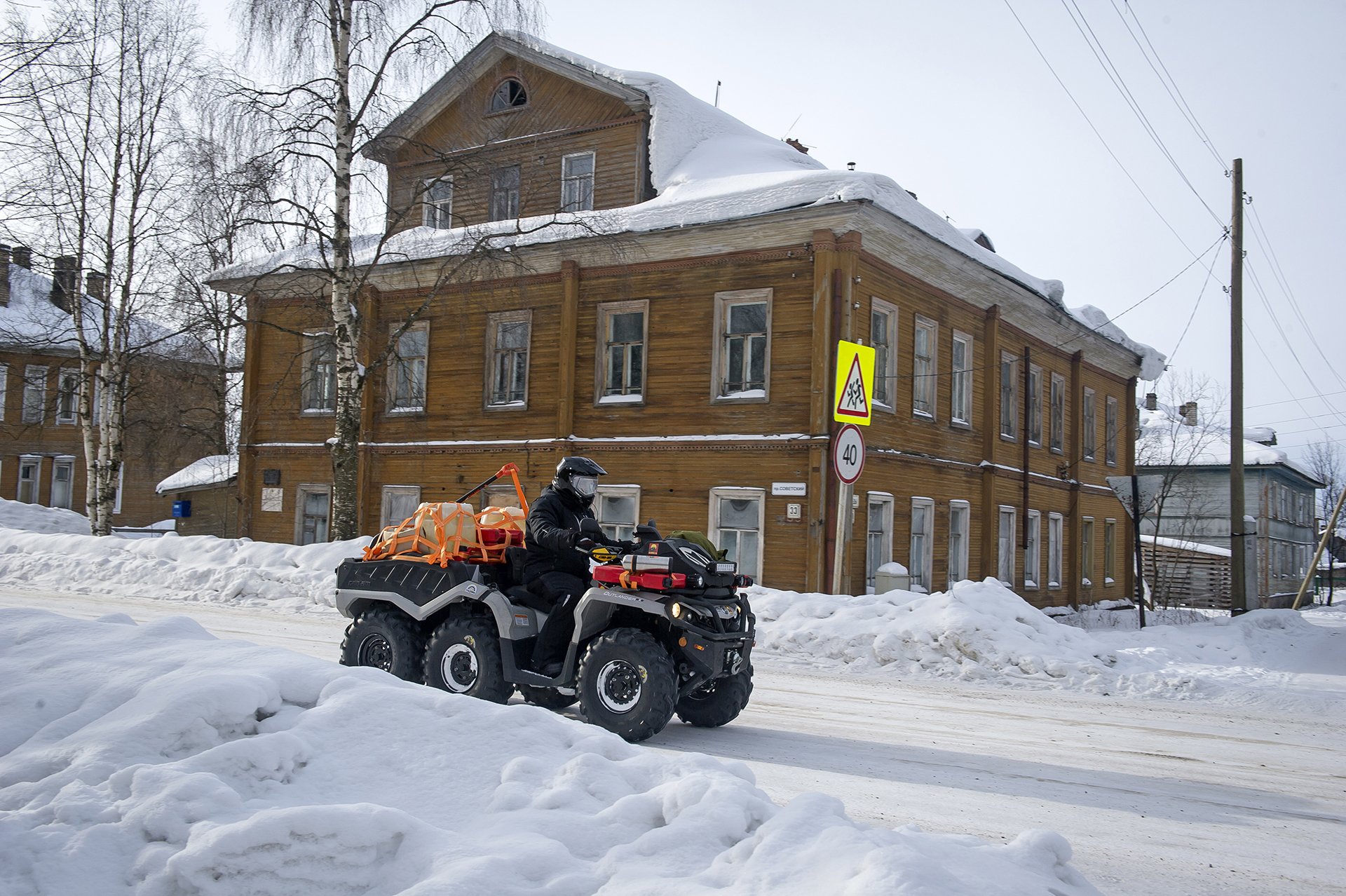 That day we woke up even earlier than necessary. Having crossed the river Mezen, we got to Kamenka. Hospitable locals who are great fans of off-road vehicles offered us pancakes with cloudberry jam for breakfast . Then we made a trip to the village of Dolgoshchelye, about 35 kilometers away. The village is really beautiful, its streets with real northern houses are amazing (just like the museum in Malye Korely, but real-life and better), and in order to feel the whole charm of the northern way of life deeply, of course, it is better to stay here longer. We took some photos and went back to Kamenka.