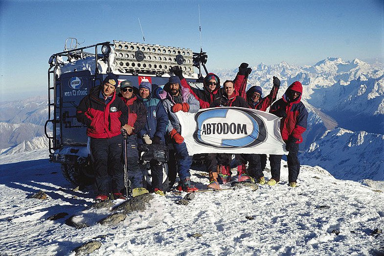 On September 13, 1997, an outstanding event took place: the AUTODOM company and the Land Rover Defender-90 serial car, as well as eight crew members climbed the highest peak in Europe - ELBRUS and conquered a height of 5621 m. However, during the descent the safety rope broke off and an empty car fell down over a cliff ... This story is still passed on by word of mouth by tourists who came to visit Mount Elbrus.