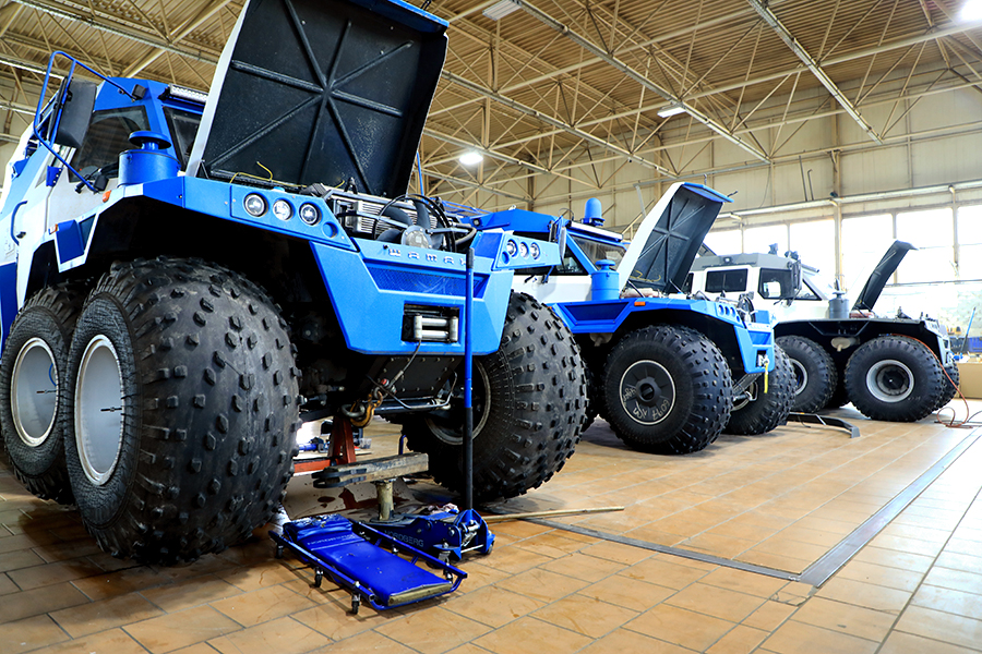 Продолжается доработка и совершенствование трансмиссии вездехода «ШАМАН», учитывая эксплуатационную статистику первых выпущенных экземпляров. Закупка нового современного оборудования для оснащения металлообрабатывающих и сварочных участков компании.