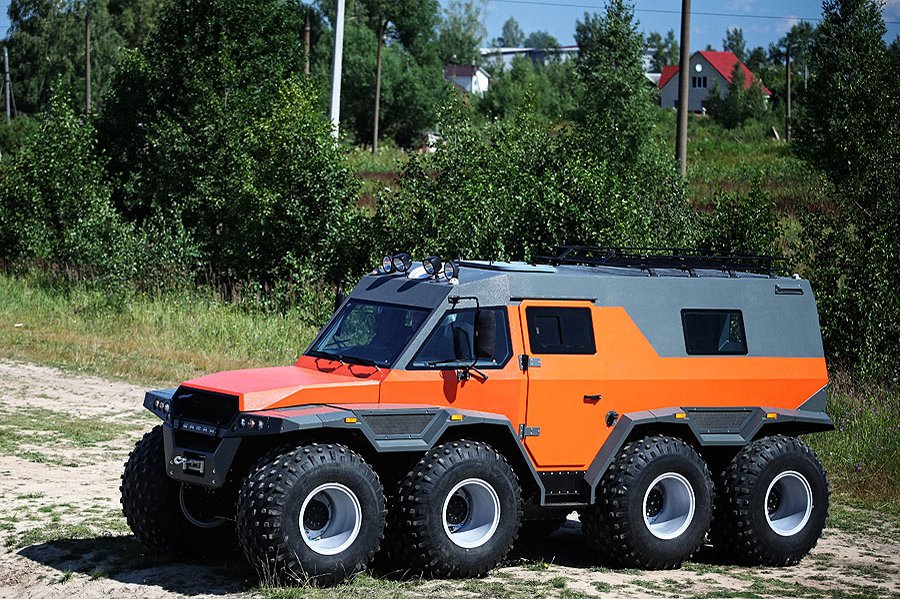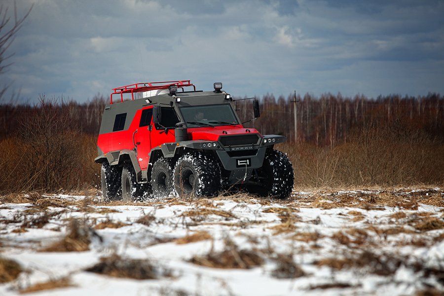 г. Москве представлен обновленный вездеход, который имеет новое шасси, построенное по мостовой схеме, а так же современный эргономичный интерьер и экстерьер. Новый вездеход наделен особыми способностями и имя его – «ШАМАН».